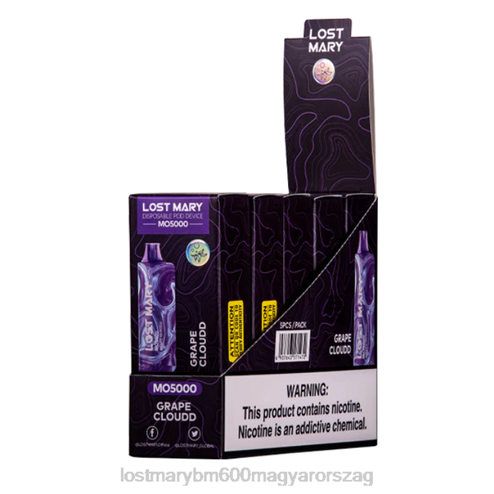 a szőlőfelhő elveszett mary mo5000 (korábban szőlőzselé) újratölthető vape minden felfújásban édesített szőlőlekvár ízt használ. e-liquid tartalom: 10ml